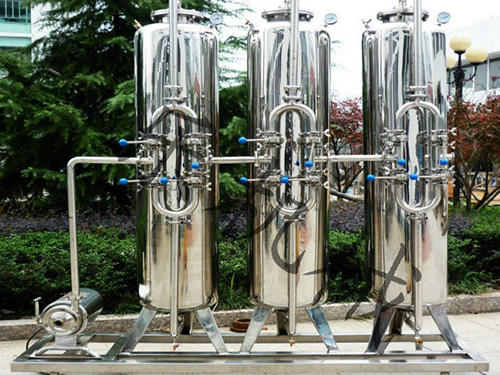 采用多次過濾層的過濾器,主要目的是去除原水中含有的泥沙、鐵銹、膠體物質、懸浮物等顆粒在20um以上的物質,可選用手動閥門控制或者全自動控制器進行反沖洗、正沖洗等一系列操作。保證設備的產水質量,延長設備的使用壽命。