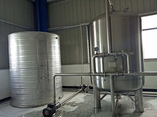 原水箱主要用于儲存原水,用于沉淀水中的大泥沙顆粒及其它可沉淀物質。同時緩沖原水管中水壓不穩定對水處理系統造成的沖擊。(如水壓過低或過高引起的壓力傳感的反應)。